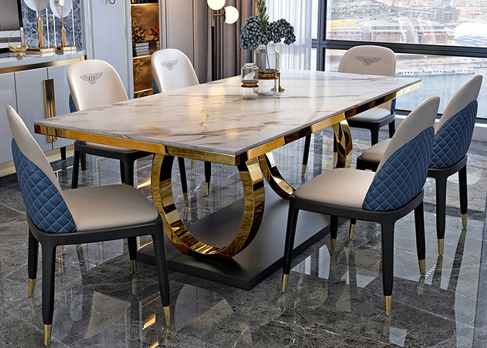Luxury marble dining table, stainless steel frame, strong and durable for family dining